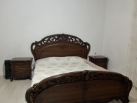 Продается б/у двуспальная кровать без матраса в очень хорошем состоянии. Цвет ореховый в живую красивый, цена 25.000, торг Находится в Назрани