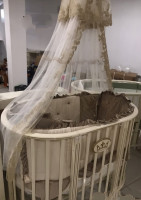 Производство Турция. Постельное как на последней фотке(отдельно покупалось в районе 10т.). В магазине полный комплект кроватки стоит в пределах 30т., а то и больше. Кроватка в разобранном виде. Все имеется в сборе, в том числе и матрас. Отдам все за 20т.