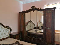 Мебель для спальной комнаты из массива дерева в очень хорошем качестве за 100 000 руб. Хороший торг для реального покупателя. Пятидверный шкаф, кровать 200 на 180, ортопедический матрас, две прикроватные тумбы, туалетный стол с зеркалом, оригинальный пуф.
