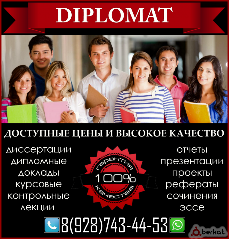 Курсовая работа, дипломная работа, магистерская диссертация, кандидатская, реферат, отчет по практике, дневник практики, научная статья, презентация, эссе, сочинение, изложение, доклад, конспект и многое другое! Быстро, качественно и в срок! Писать на вацап: 8(964)056-76-06