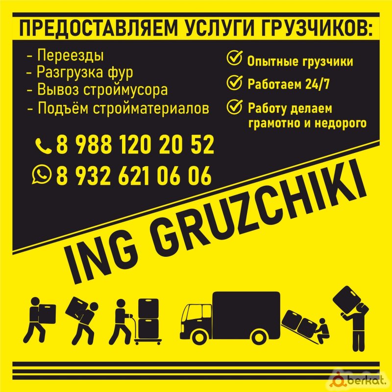 - Услуги грузчиков и грузоперевозок для любых видов работ. В Ингушетии мы работаем уже 5 лет и успешно выполнили больше 8000 заказов. Отзывы о нас смотрите в инстаграм @ING.CARGO. ————————————————————————————— - Квартирно-офисные переезды; переезд; подъем строй-материала; вывоз строительного мусора; погрузка/разгрузка; подъем и спуск мебели. Грузовая газель; Камаз-самосвал; ЗИЛ; Грузоперевозки; Разнорабочие.